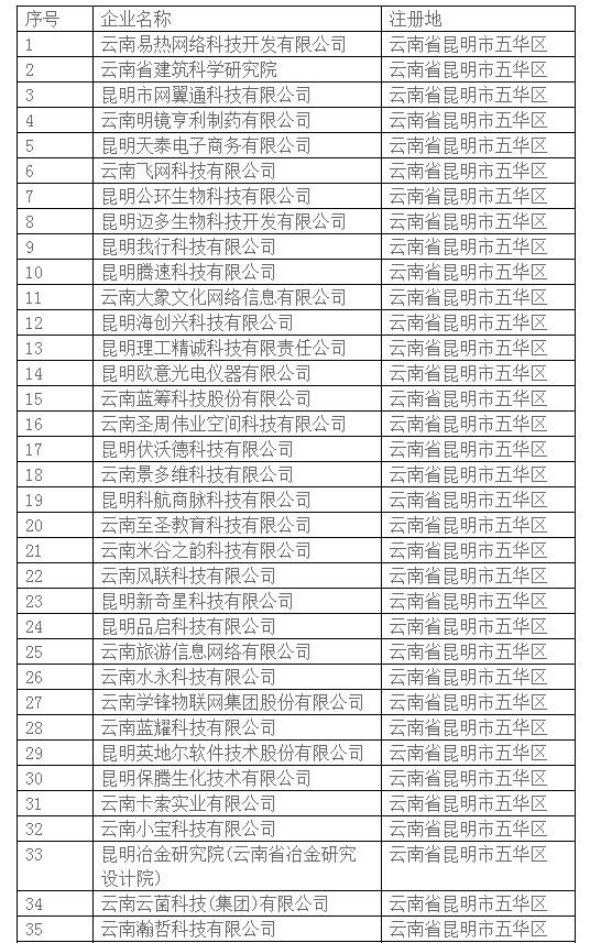 附件:云南省2018年第二批拟入库国家科技型中小企业名单