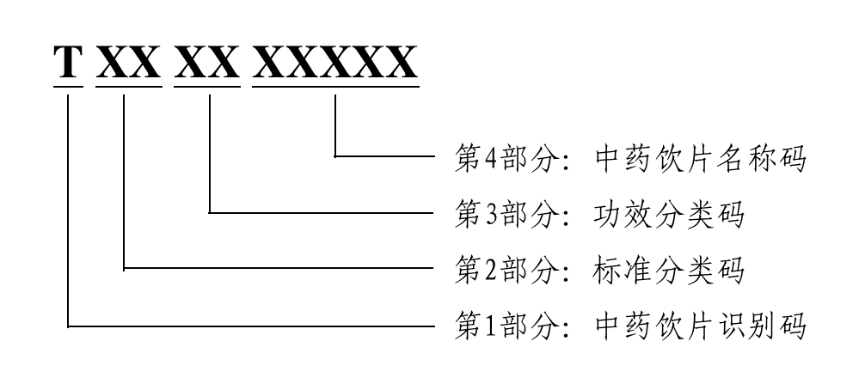 第1部分:中药饮片识别码,用1位大写英文字母“T”表示。
