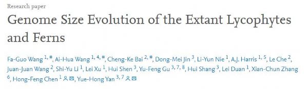 为探索蕨类植物为何具有极高的染色体数量和较大的基因组,中国科学院华南植物园植物中心研究员王发国等通过流式细胞术测量了隶属于27科72属的240种石松类和蕨类植物的基因组大小(其中228种为首次测定的结果),并在石松类和蕨类植物的系统发育框架内分析了基因组大小、孢子大小、染色体特征、系统发育信号和生境类型偏好之间的相关性。同时,对生境类型进行了祖先特征重建,并测试了基因组大小是否随生境类型的变化而改变。