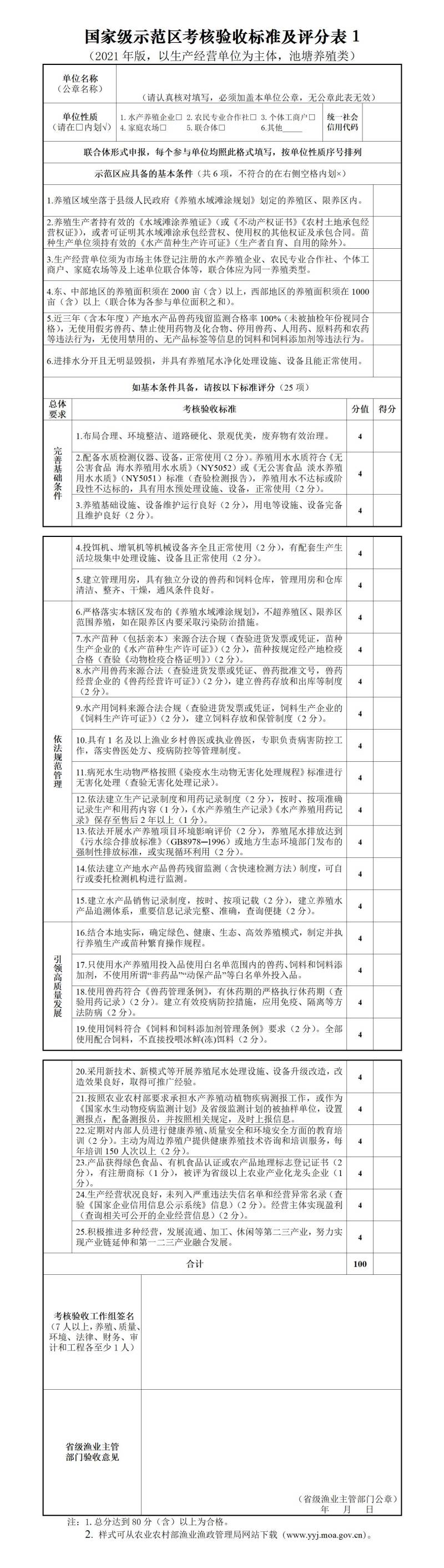 为做好云南省国家级水产健康养殖和生态养殖示范区创建示范工作,有效发挥水产绿色健康养殖的引领带动作用,根据《国家级水产健康养殖和生态养殖示范区管理办法(试行)》《农业农村部渔业渔政管理局关于开展2021年国家级水产健康养殖和生态养殖示范区创建示范活动的通知》(农渔养函〔2021〕61号)要求,结合云南省实际,省农业农村厅制定了《云南省国家级水产健康养殖和生态养殖示范区管理细则》,现印发给你们,请结合本地实际,认真贯彻落实。