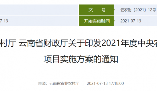 云南省农业农村厅 云南省财政厅关于印发2021年度中央农业生产发展等项目实施方案的通知