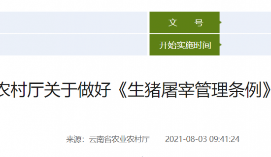 云南省农业农村厅关于做好《生猪屠宰管理条例》宣贯工作的通知