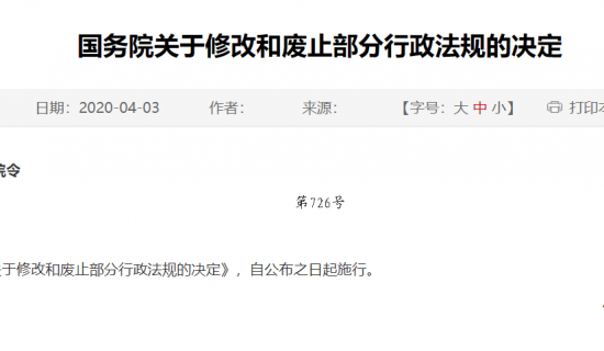 现公布《国务院关于修改和废止部分行政法规的决定》,自公布之日起施行。