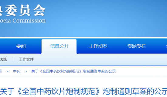 关于《全国中药饮片炮制规范》炮制通则草案的公示