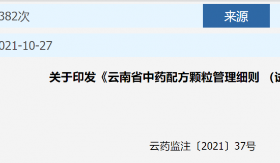 为加强我省中药配方颗粒管理,规范中药配方颗粒的生产、备案、使用和医保支付等,根据国家有关法律法规规定,我省制定了《云南省中药配方颗粒管理细则(试行)》。现予印发,请遵照执行。