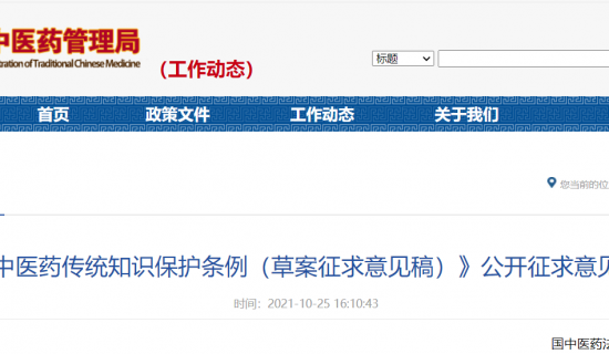 关于《中医药传统知识保护条例(草案征求意见稿)》公开征求意见的通知