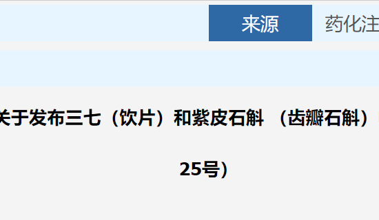 紫皮石斛(齿瓣石斛)和三七(饮片)两个中药标准已完成专家审评、公开征求意见、合法性审查等程序,符合相关规定,现予发布,自2021年12月7日之日起执行,标准正文见附件。