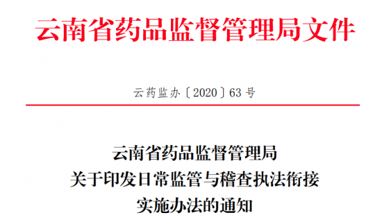 云南省药品监督管理局关于印发日常监管与稽查执法衔接实施办法的通知