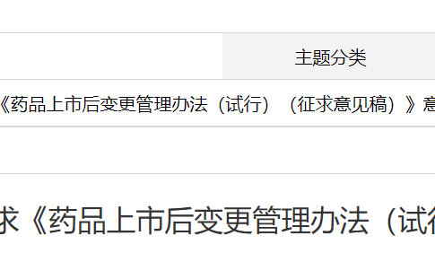 国家药监局综合司公开征求《药品上市后变更管理办法(试行)(征求意见稿)》意见