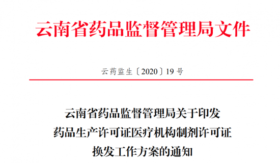 云南省药品监督管理局关于印发药品生产许可证医疗机构制剂许可证换发工作方案的通知