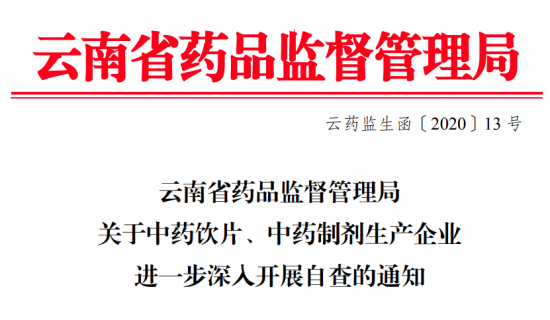 云南省药品监督管理局关于中药饮片、中药制剂生产企业进一步深入开展自查的通知