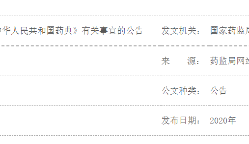 国家药监局关于实施2020年版《中华人民共和国药典》有关事宜的公告