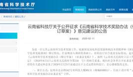 云南省科技厅关于公开征求《云南省科学技术奖励办法(修订草案)》意见建议的公告