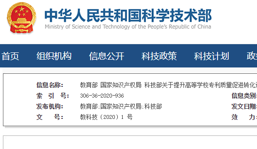 教育部 国家知识产权局 科技部关于提升高等学校专利质量促进转化运用的若干意见