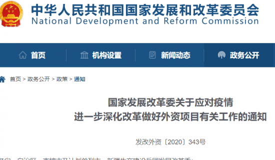 国家发展改革委关于应对疫情进一步深化改革做好外资项目有关工作的通知