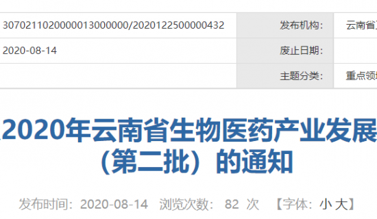 就2020年云南省生物医药产业发展专项资金(产业创新和平台建设方向)有关申报工作通知如下。