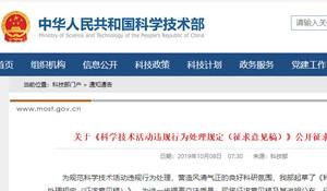 关于《科学技术活动违规行为处理规定(征求意见稿)》公开征求意见的公告