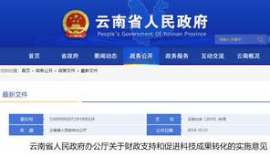 云南省人民政府办公厅关于财政支持和促进科技成果转化的实施意见