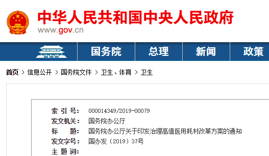 国务院办公厅关于印发 治理高值医用耗材改革方案的通知