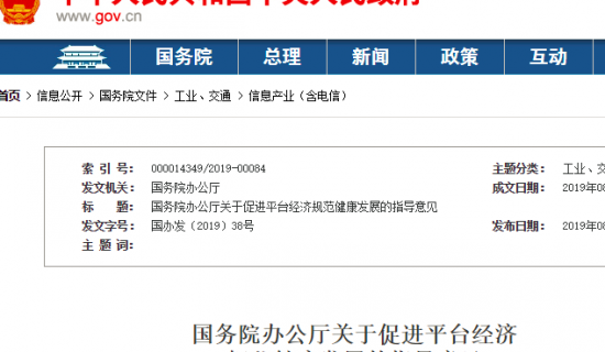 国务院办公厅关于促进平台经济 规范健康发展的指导意见