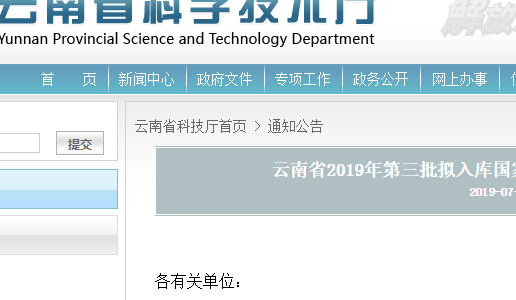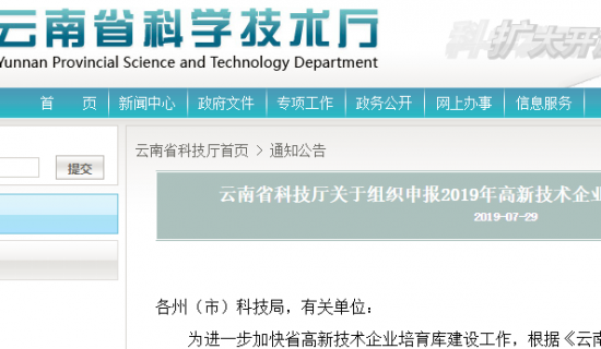 云南省科技厅关于组织申报2019年高新技术企业培育库入库企业的通知