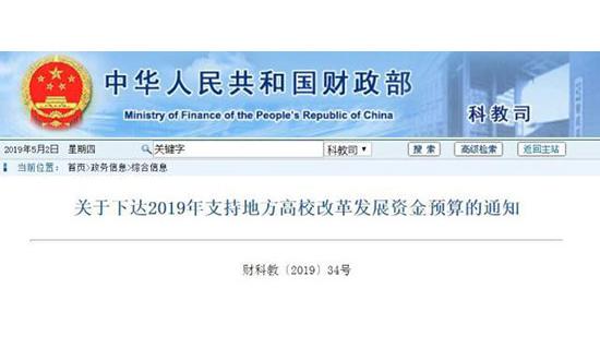 日前,国家财政部发布了关于下达2019年支持地方高校改革发展资金预算的通知。