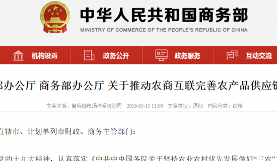 财政部办公厅 商务部办公厅 关于推动农商互联完善农产品供应链的通知