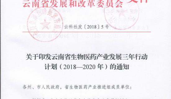 关于印发云南省生物医药产业发展三年行动计划(2018-2020年)的通知