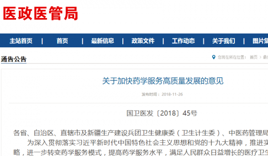 关于加快药学服务高质量发展的意见