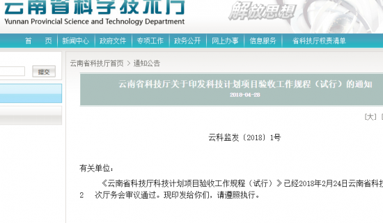 《云南省科技厅科技计划项目验收工作规程(试行)》