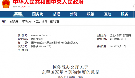 国务院办公厅关于 完善国家基本药物制度的意见