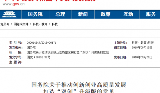 国务院关于推动创新创业高质量发展打造“双创”升级版的意见