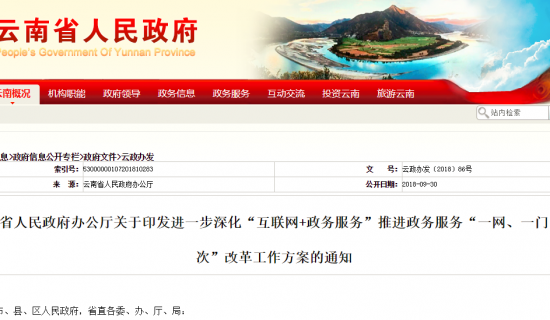 南省人民政府办公厅关于印发进一步深化“互联网+政务服务”推进政务服务“一网、一门、一次”改革工作方案的通知