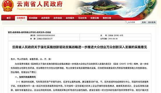 云南省人民政府关于强化实施创新驱动发展战略进一步推进大众创业万众创新深入发展的实施意见