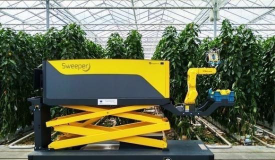正在开发一款名为 Sweeper 的机器人,可以在甜椒种植的温室内自主来回巡视,观察甜椒是否成熟,并将成熟的甜椒摘下放入篮子中。